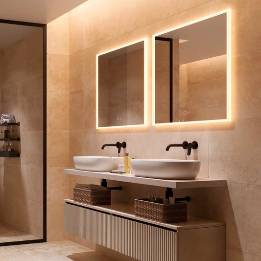 - Tamaño: asegúrate de que el espejo no sobrepase el ancho del lavabo para mantener un equilibrio visual.